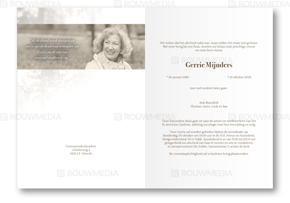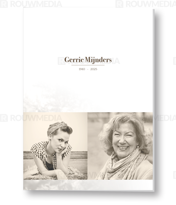 Bij deze rouwkaart heeft u de mogelijkheid om twee eigen foto of portret weer te geven in sepia stijl.