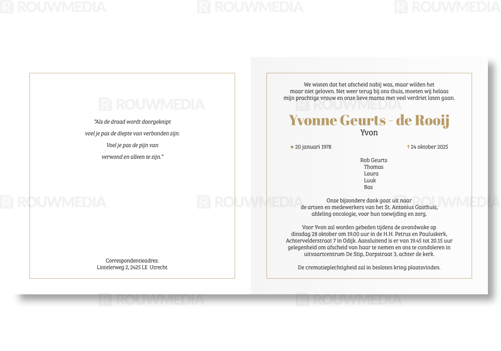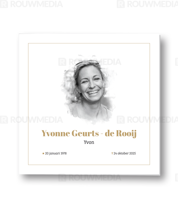 Bij deze rouwkaart heeft u de mogelijkheid om een eigen foto of portret weer te geven in stijlvol kader.