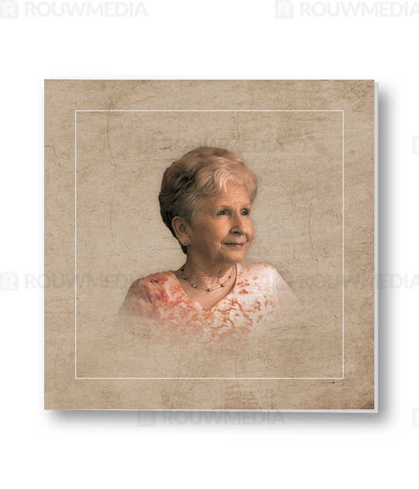 Bij deze vierkante rouwkaart heeft u de mogelijkheid om een eigen foto of portret weer te geven in retrostijl.