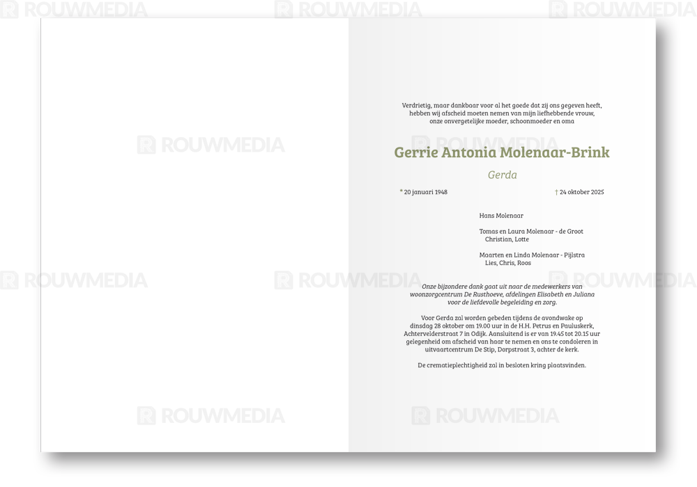 Rouwkaart met portret in vogel silhouette | Rechthoekig | Met portret foto