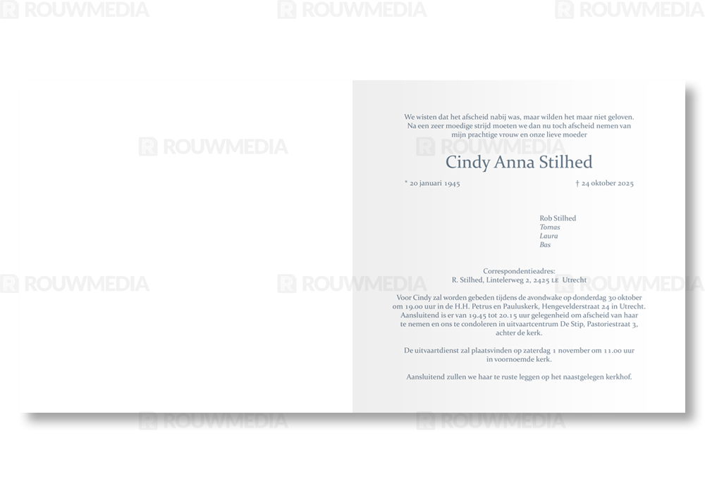 Rouwkaart met portret op grijze achtergrond