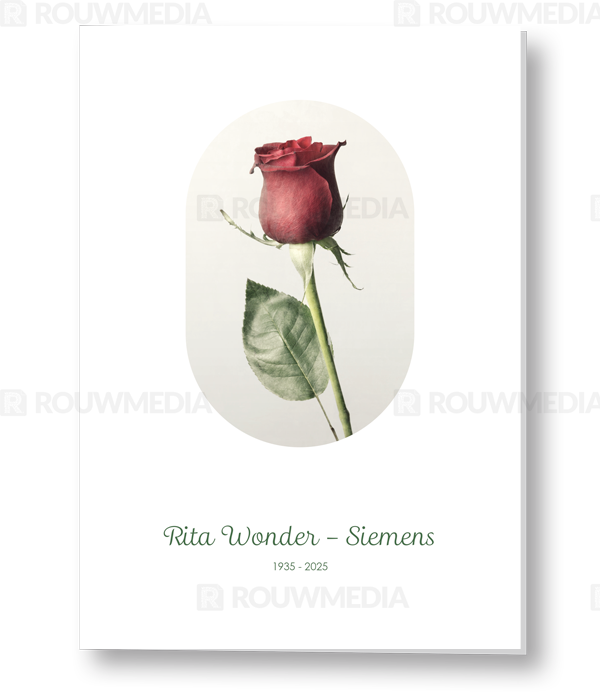 Op deze kaart wordt een rode roos weergegeven en aan de binnenzijde van de kaart is het mogelijk een portretfoto te plaatsen in een kader.