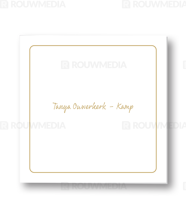 Rouwkaart met rond goud kader. Naam kan midden in de Rouwkaart geplaatst worden.