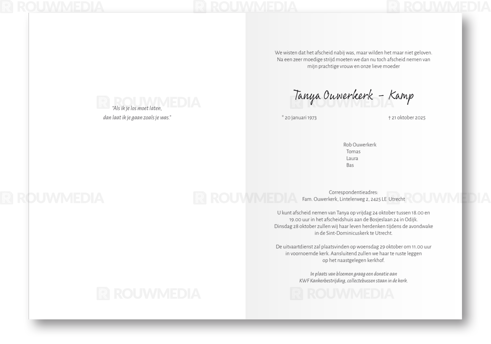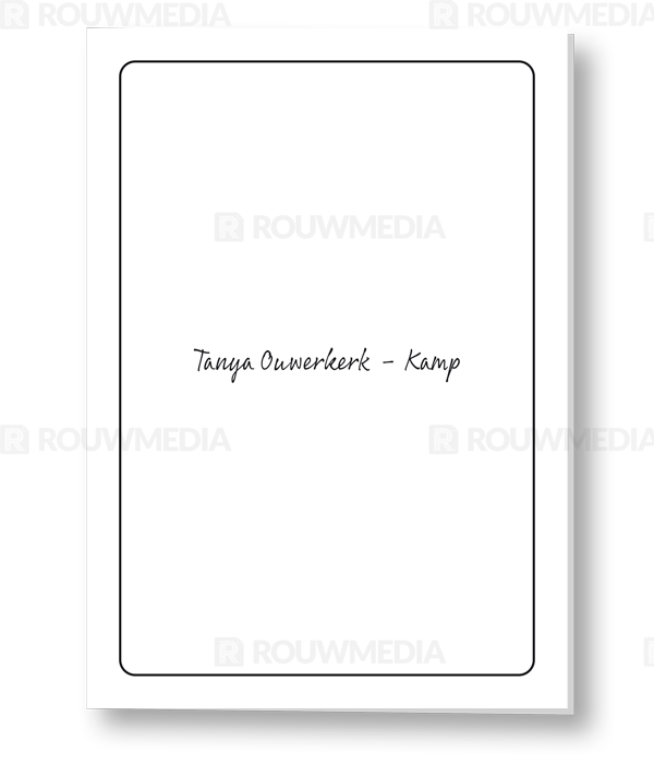 Staande Rouwkaart met rond zwart kader. Naam kan midden in de Rouwkaart geplaatst worden.