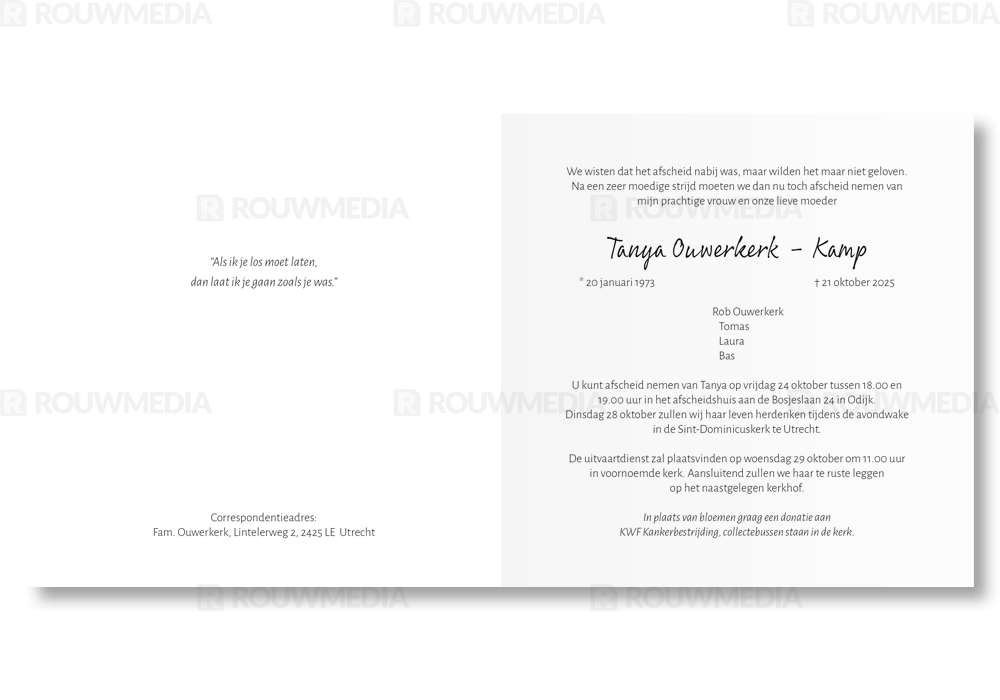 Rouwkaart met rond zwart kader. Naam kan midden in de Rouwkaart geplaatst worden.