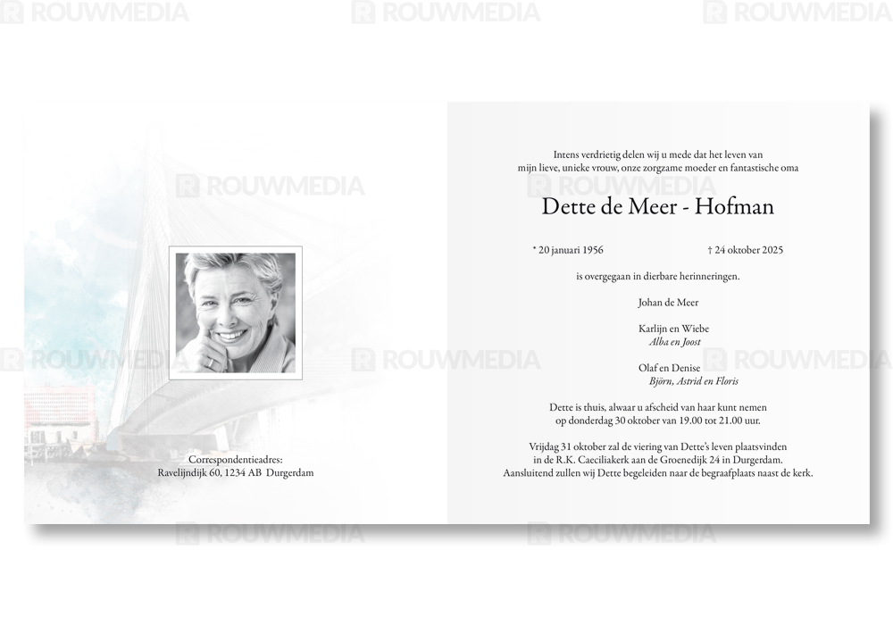Rouwkaart met Rotterdam Erasmusbrug