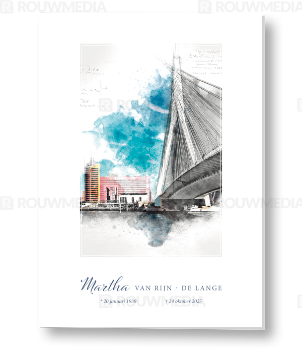 Rouwkaart met Rotterdam Erasmusbrug | Rechthoekig