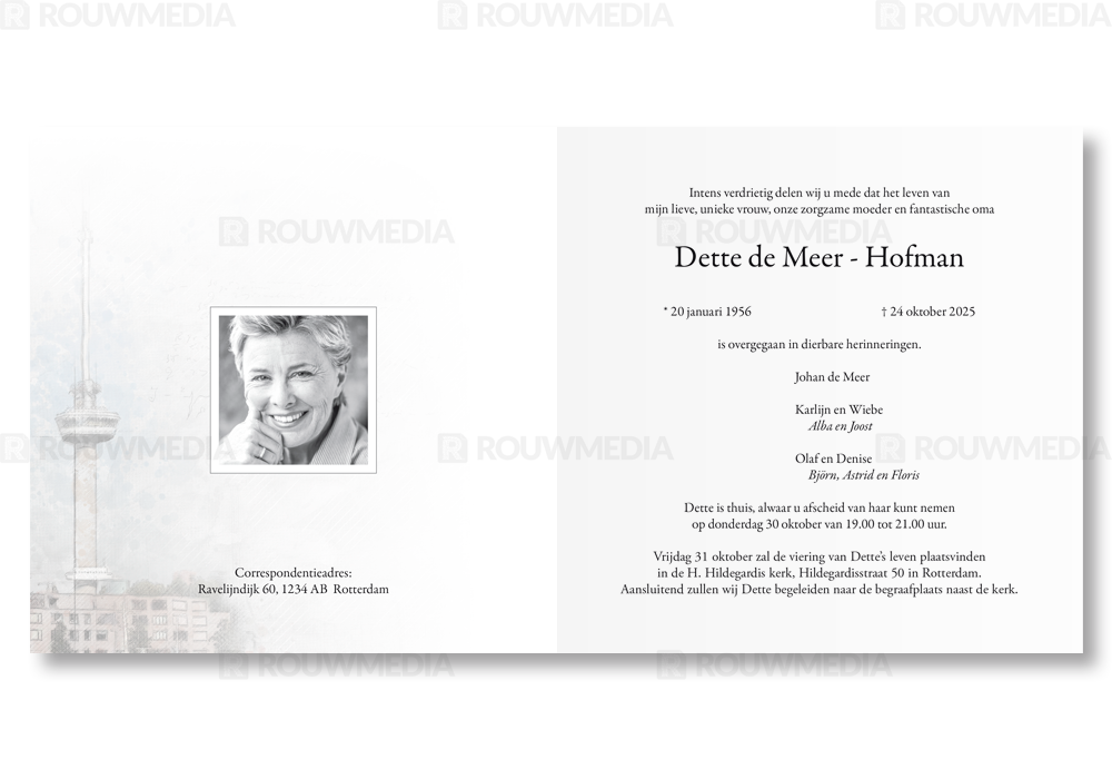 Rouwkaart met Rotterdam Euromast | Vierkant