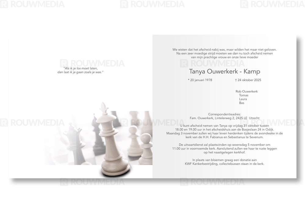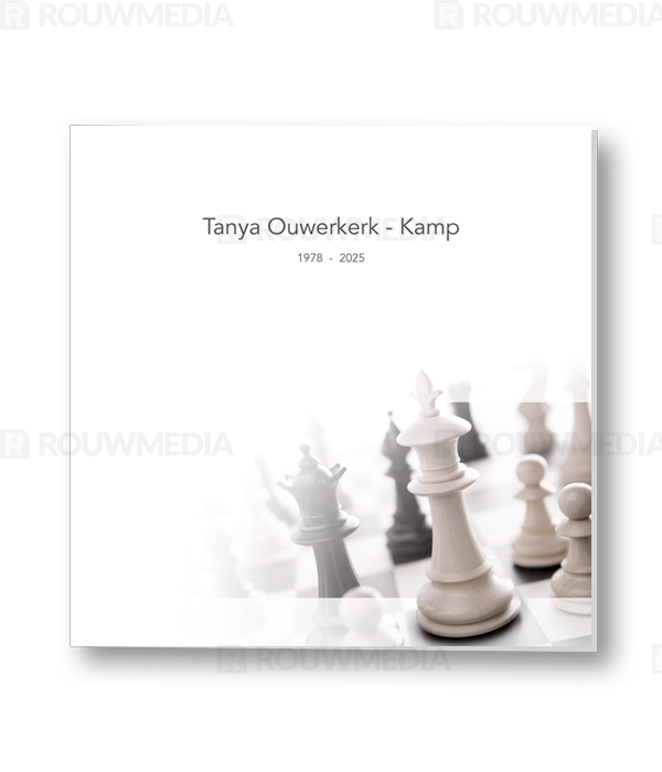 In deze rouwkaart wordt een sport/hobby weergegeven op een witte achtergrond. Het is ook mogelijk om de naam en datums weer te geven.