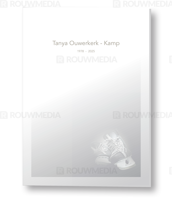 In deze staande rouwkaart wordt een sport/hobby weergegeven op een zwarte achtergrond. Het is ook mogelijk om de naam en datums weer te geven.