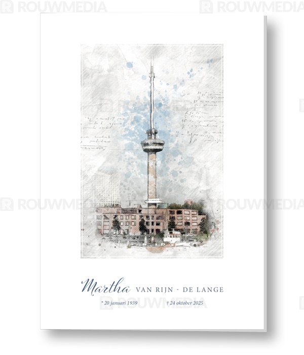 Rouwkaart met schets Rotterdam Euromast