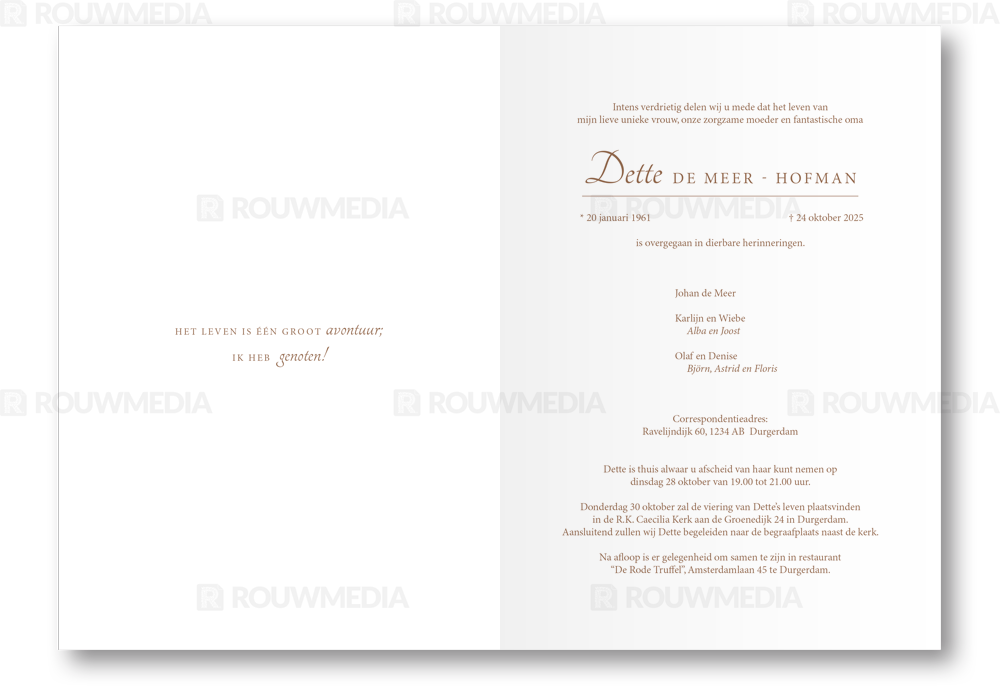 Rouwkaart met schilderij Stilleven met vergulde bokaal