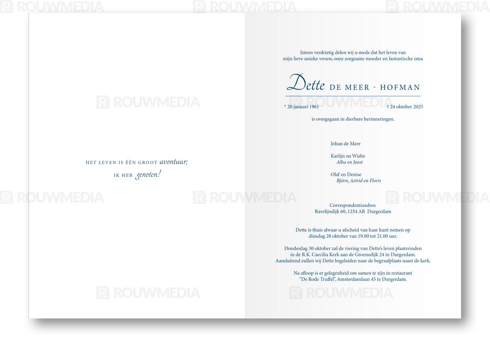 Rouwkaart met schilderij van het Melkmeisje | Rechthoekig