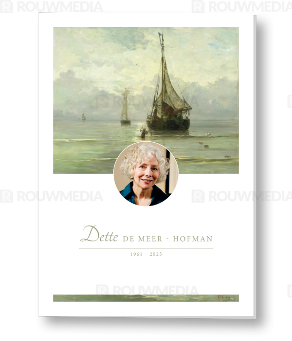 Rouwkaart met schilderij van kalme zee