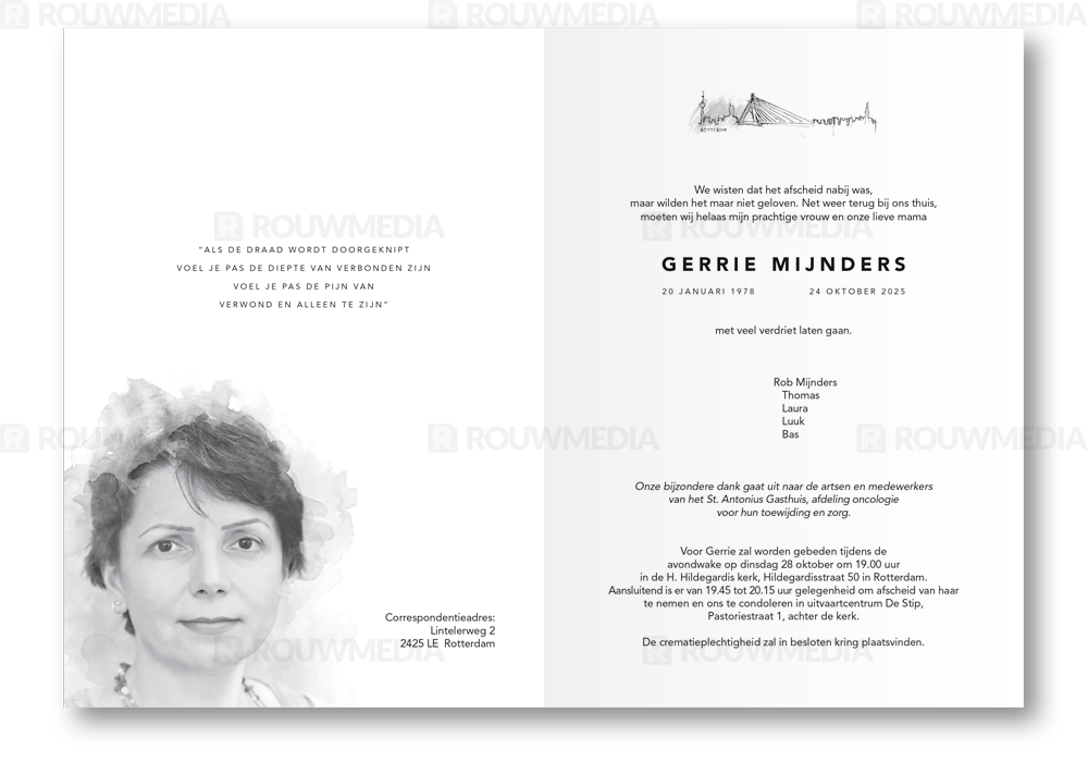 Rouwkaart met schildering van Rotterdam