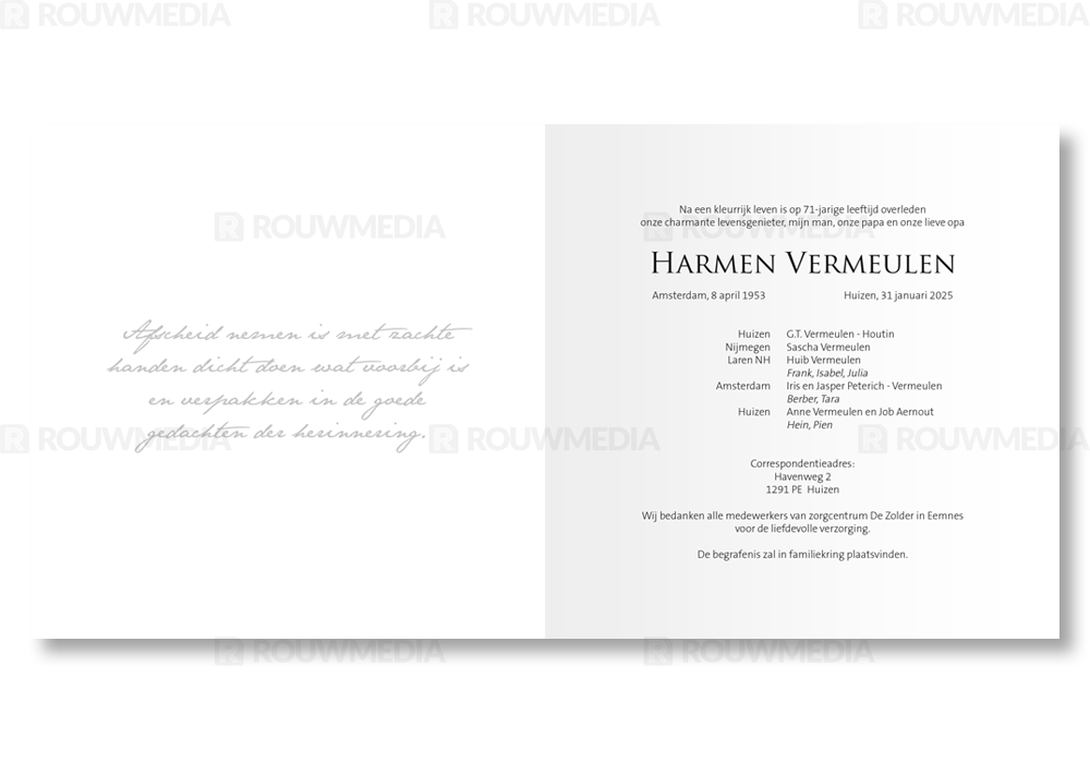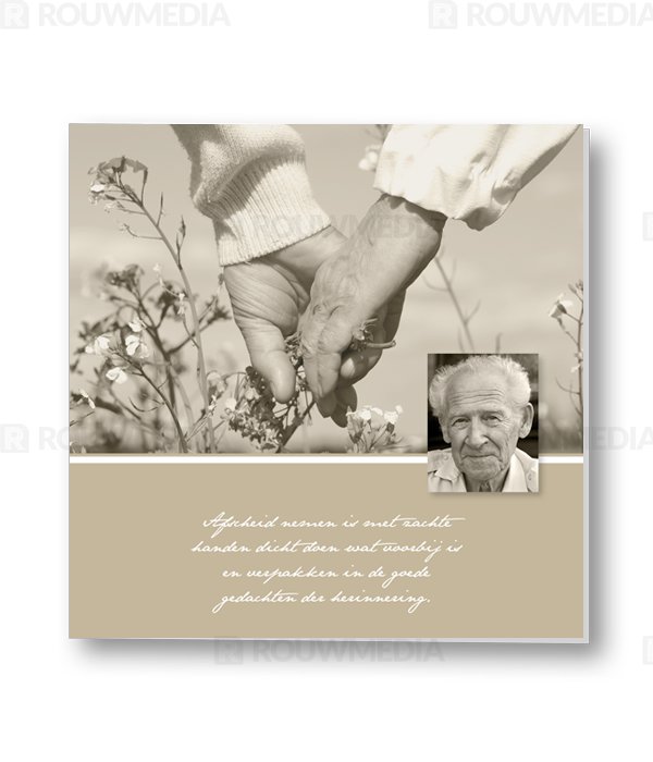 Bij deze rouwkaart heeft u de mogelijkheid om een eigen foto of portret weer te geven in sepia kader met extra afbeelding en gedicht.