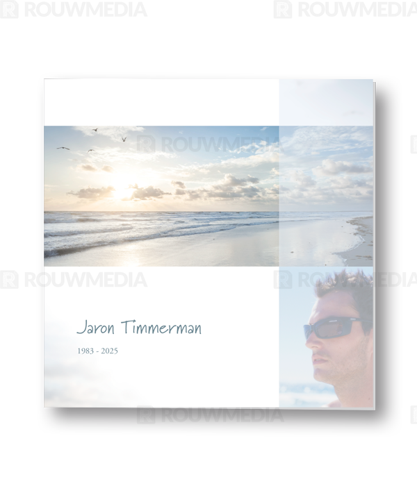 Rouwkaart met strand en portret