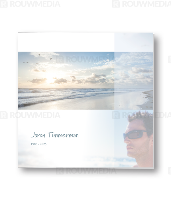 Rouwkaart met strand en portret