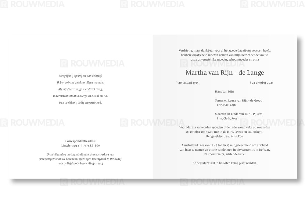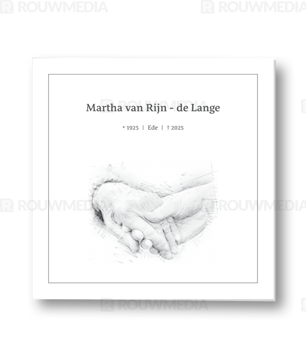 Bij deze rouwkaart kunt u een eigen foto of afbeelding aanleveren. Deze afbeelding wordt dan opgemaakt zo opgemaakt dat het net een schetstekening is.