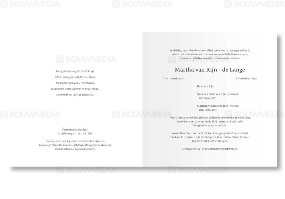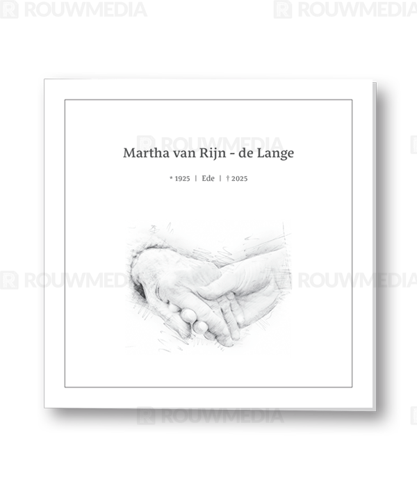 Bij deze rouwkaart kunt u een eigen foto of afbeelding aanleveren. Deze afbeelding wordt dan opgemaakt zo opgemaakt dat het net een schetstekening is.