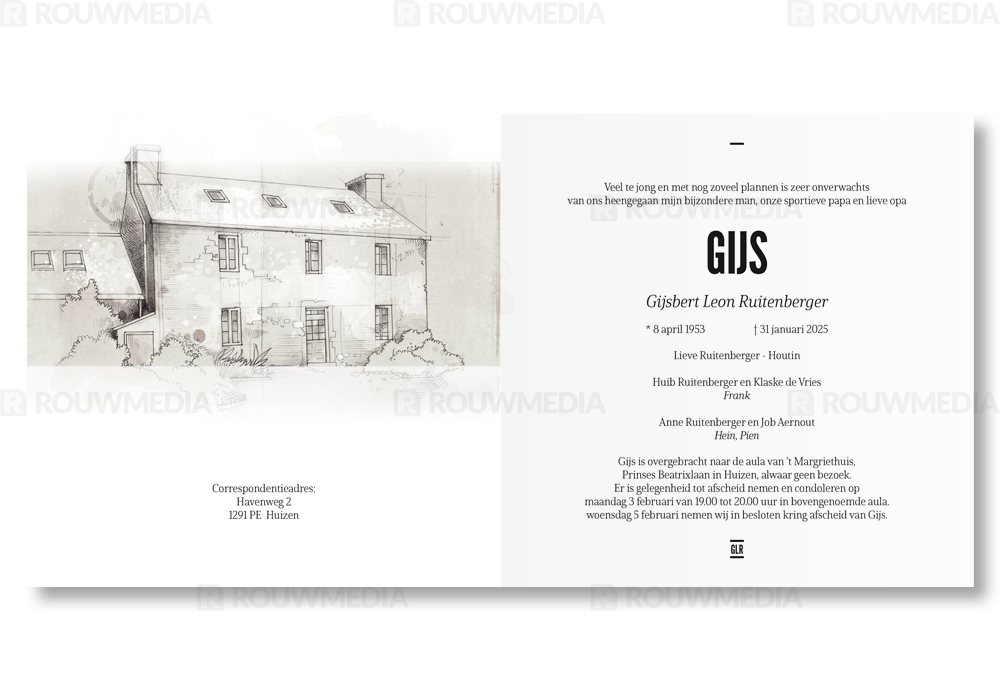 Rouwkaart met tekening woning