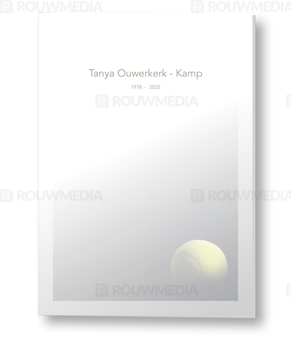 Rouwkaart met tennisbal op donkere achtergrond