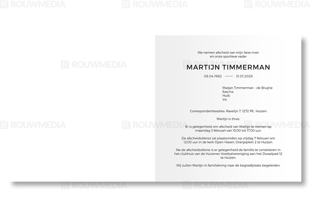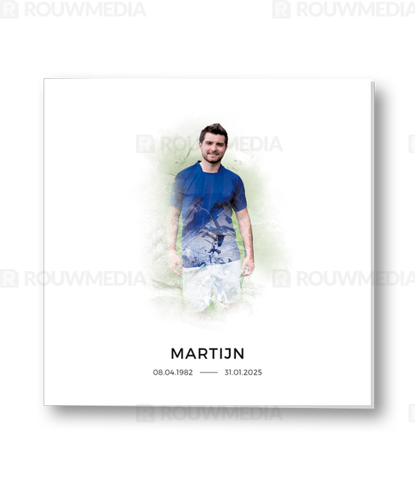 Bij deze rouwkaart heeft u de mogelijkheid om een eigen foto of portret aan te leveren. Deze afbeelding wordt dan zo opgemaakt dat het net een schetstekening is.