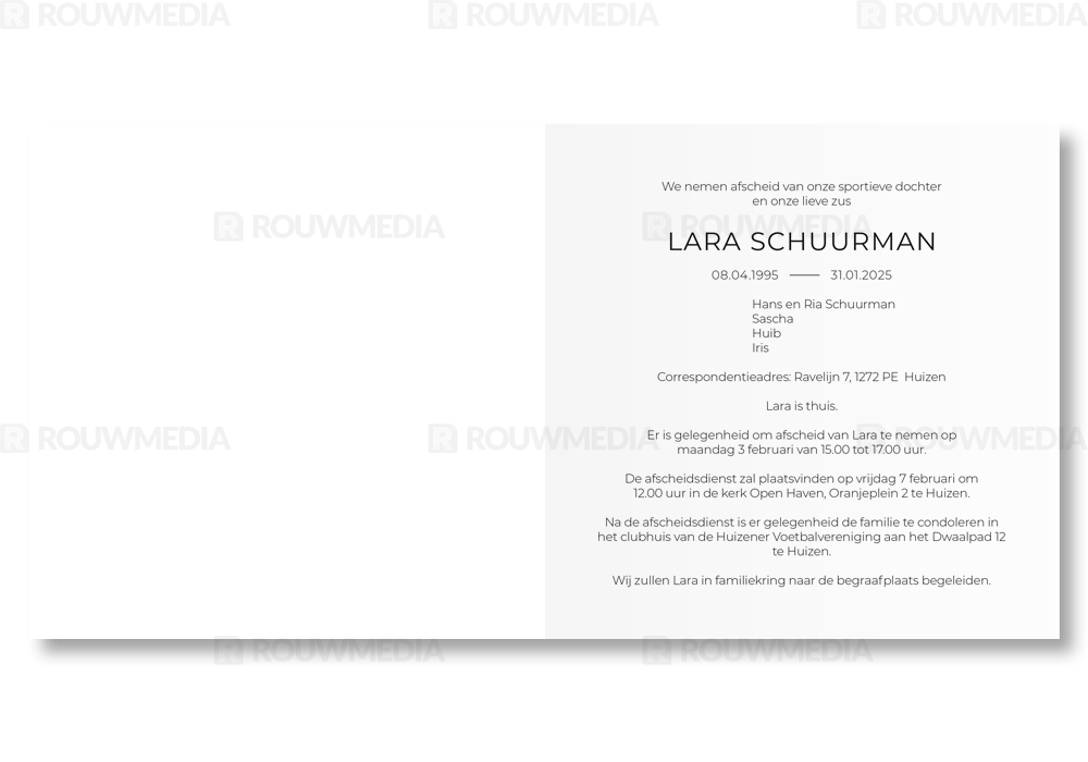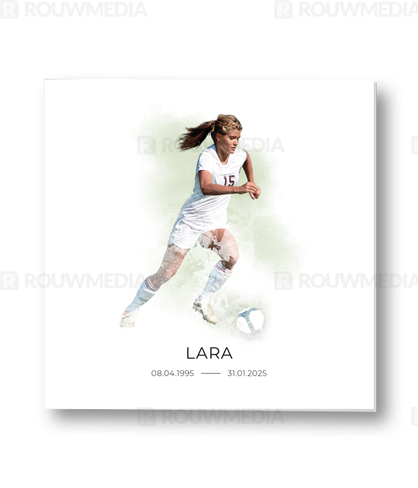 Bij deze rouwkaart heeft u de mogelijkheid om een eigen foto of portret aan te leveren. Deze afbeelding wordt dan zo opgemaakt dat het net een schetstekening is.