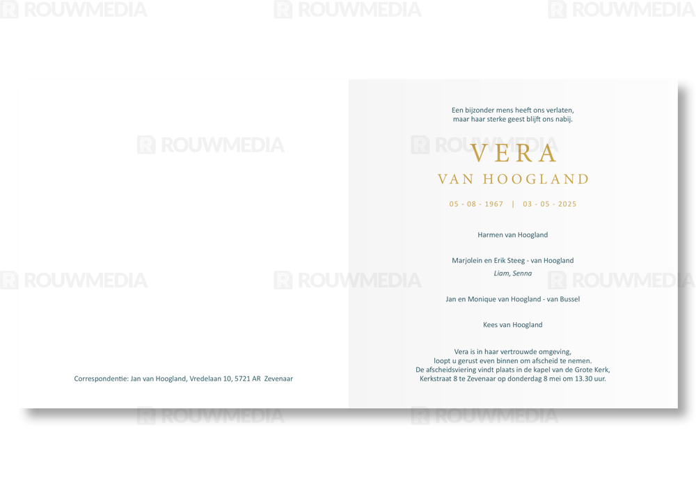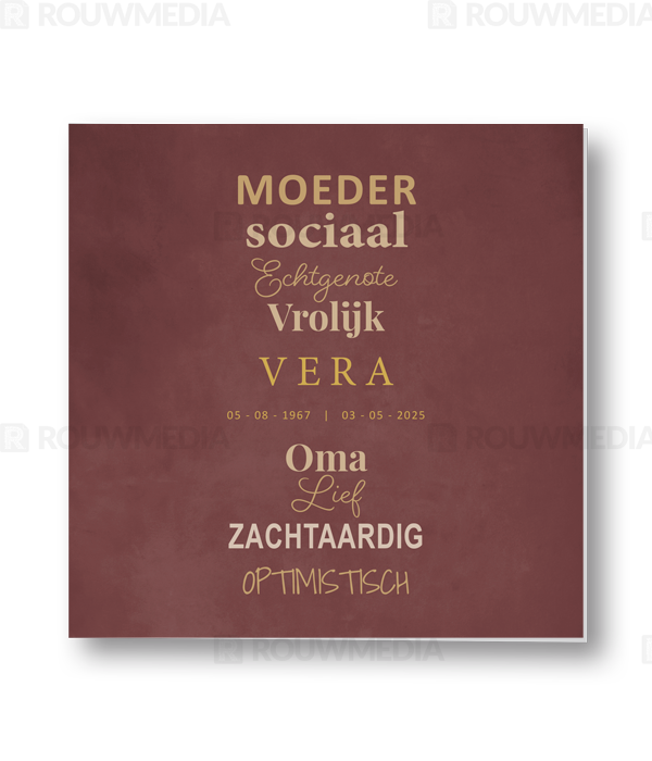 Rouwkaart met typografische weergave van eigenschappen | Vierkant