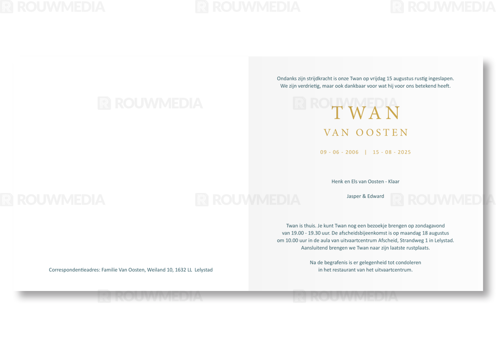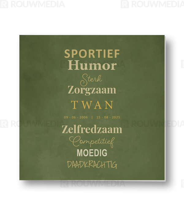 Rouwkaart met typografische weergave van eigenschappen | Vierkant