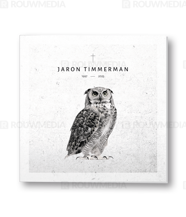 Rouwkaart met uil in silhouette met abstracte achtergrond
