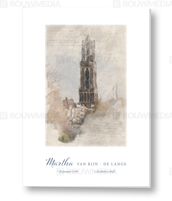 Rouwkaart met Utrecht Domtoren | Rechthoekig