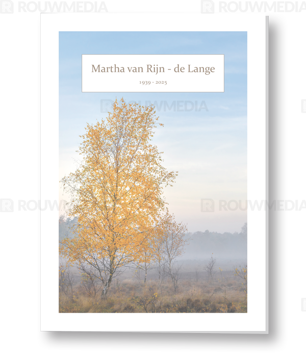In deze staande rouwkaart wordt een beeldvullende afbeelding weergegeven van de Veluwse heide.