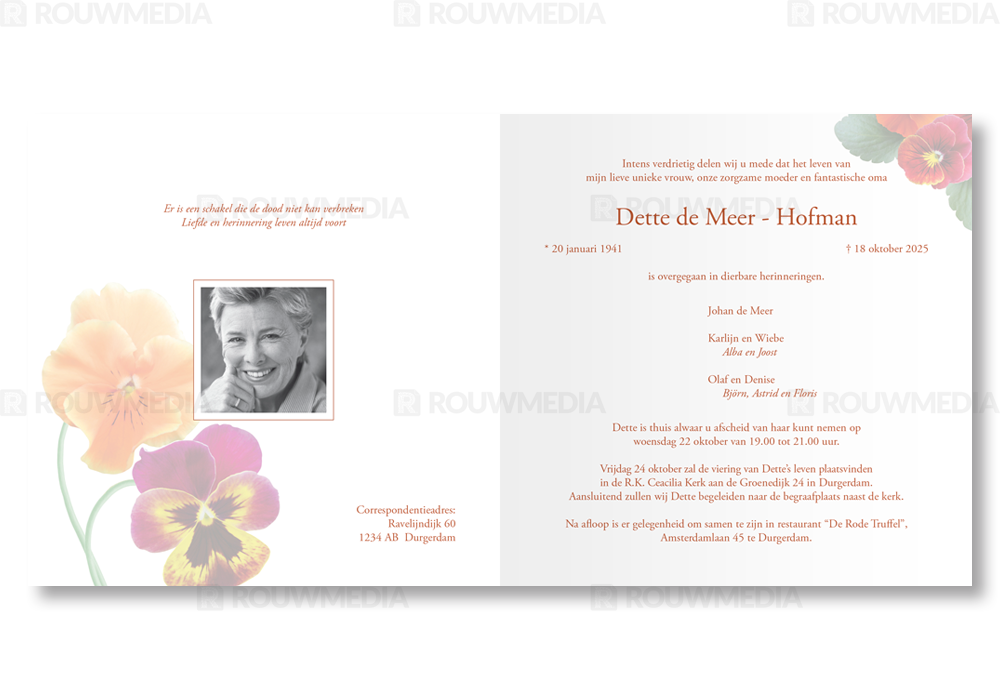 Rouwkaart met viooltjes