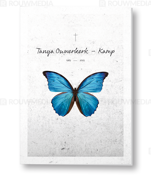 Rouwkaart met vlinder in silhouette met abstracte achtergrond