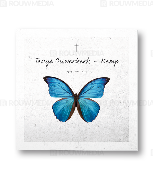 Rouwkaart met vlinder in silhouette met abstracte achtergrond