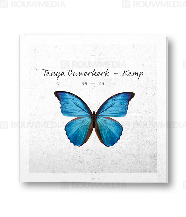 Rouwkaart met vlinder in silhouette met abstracte achtergrond