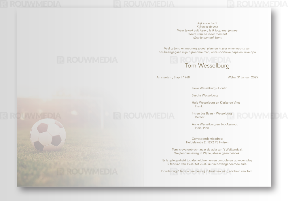Rouwkaart met voetbal