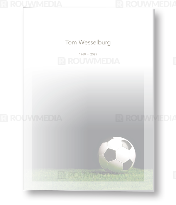 Rouwkaart met voetbalveld op donkere achtergrond