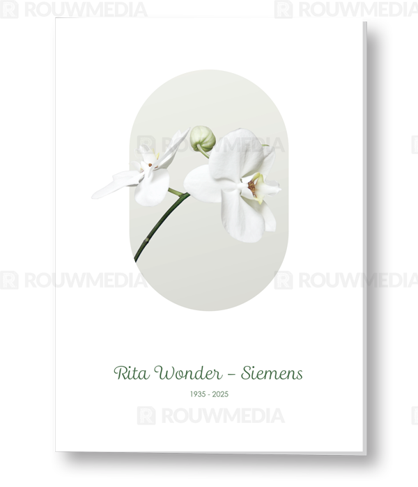 Op deze kaart wordt een witte orchidee weergegeven en aan de binnenzijde van de kaart is het mogelijk een portretfoto te plaatsen.