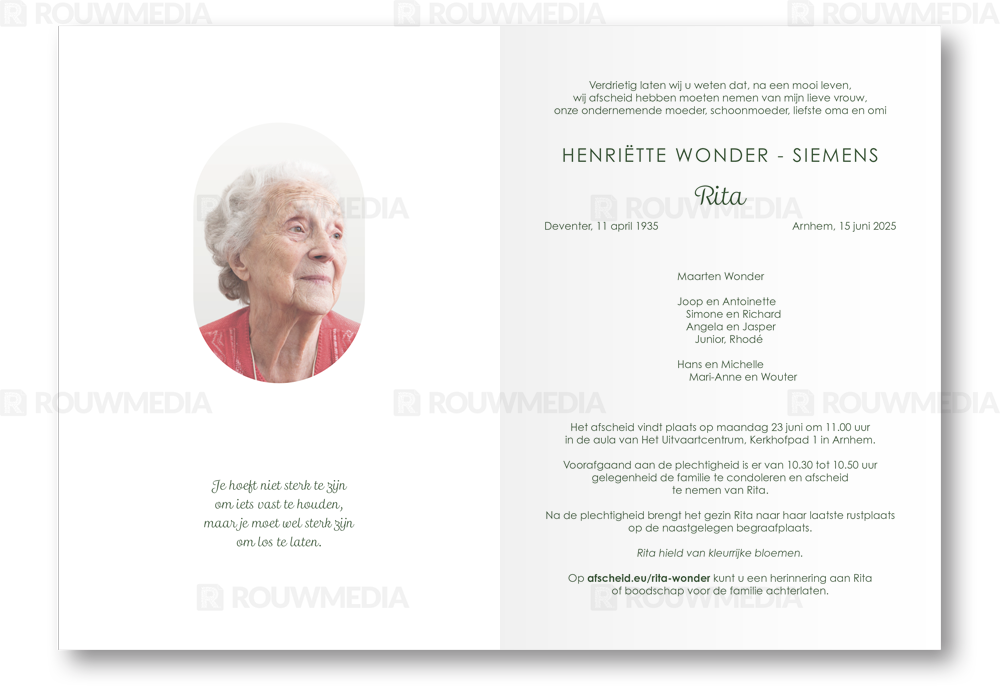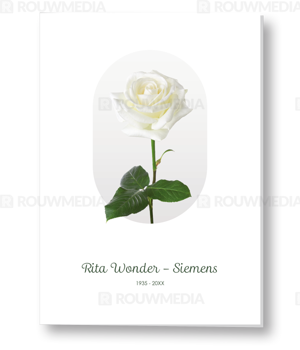 Op deze kaart wordt een witte roos weergegeven en aan de binnenzijde van de kaart is het mogelijk een portretfoto te plaatsen in een kader.