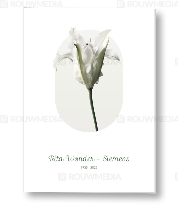 Op deze kaart wordt een witte tulp weergegeven en aan de binnenzijde van de kaart is het mogelijk een portretfoto te plaatsen in een kader.