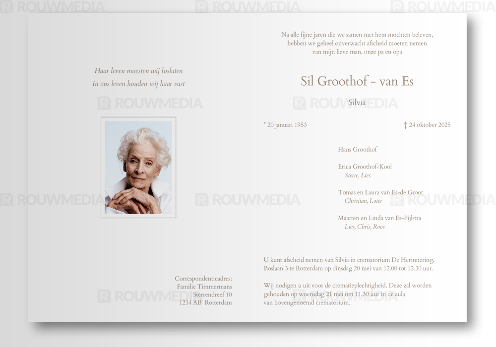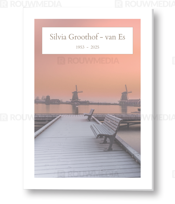 In deze staande rouwkaart wordt een beeldvullende afbeelding weergegeven van de Zaanse Schans.
