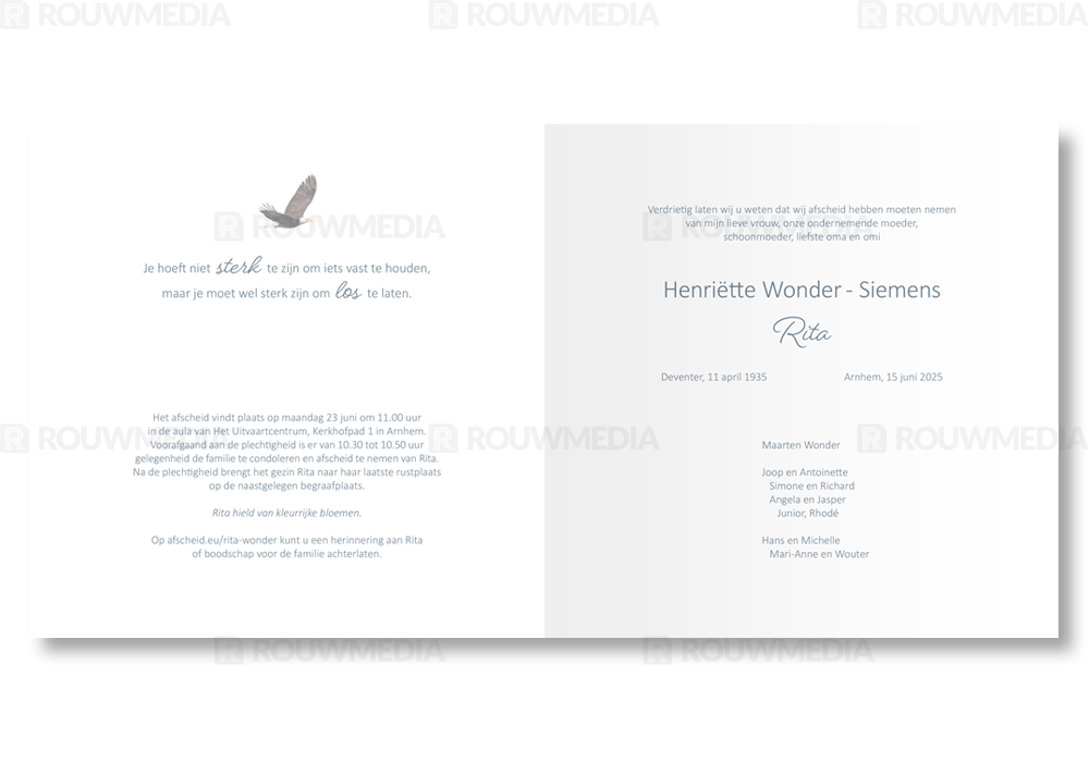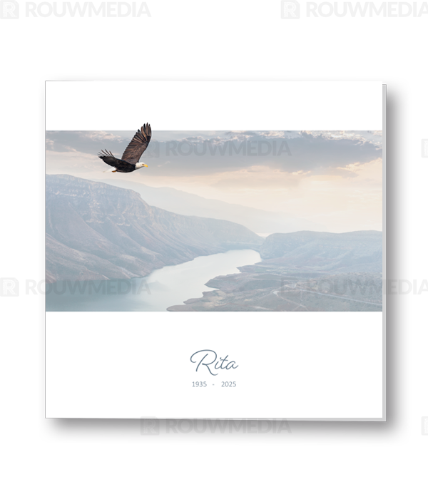 Op deze rouwkaart wordt een zeearend weergegeven die vliegt boven het mooie landschap van de rivier Botan in Turkije