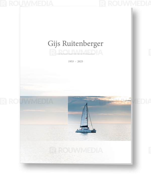 Rouwkaart met zeilboot op zee