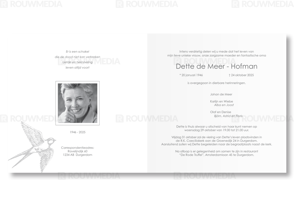 Rouwkaart met zwaluw