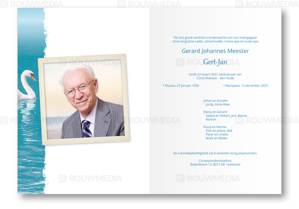 Rouwkaart met zwanen