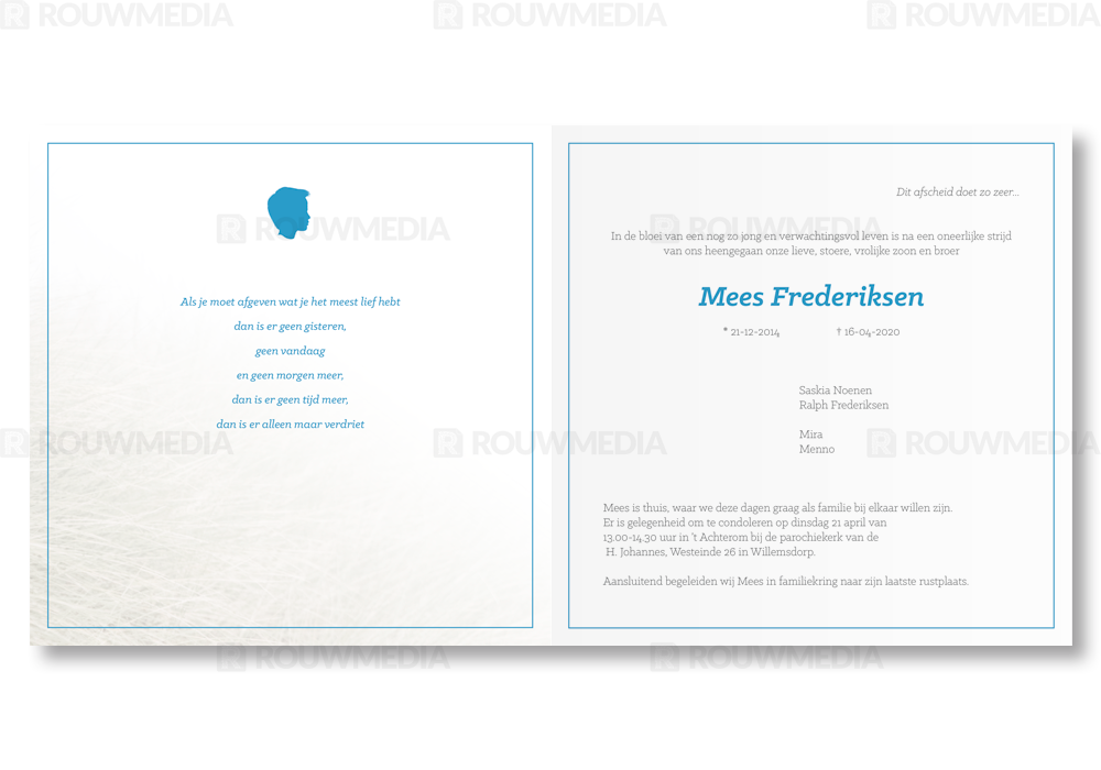 Rouwkaart voor jongen met Silhouet en persoonlijke foto aan de voorkant