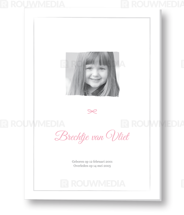 Rouwkaart voor kind met vierkante foto en naam