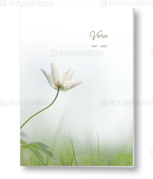 Deze staande rouwkaart toont enkele witte anemoon in de natuur.